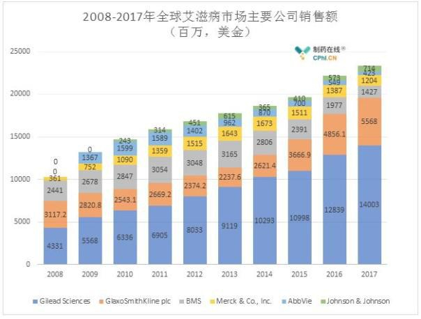 它更是击败葛兰素史克、百时美施贵宝、默沙东等巨头,在全球艾滋病药物市场占据了50%以上的份额。