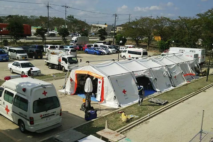 △ 在日本茨城县常总市搭建的 dERU。图片来源 | 日本红十字会 Facebook