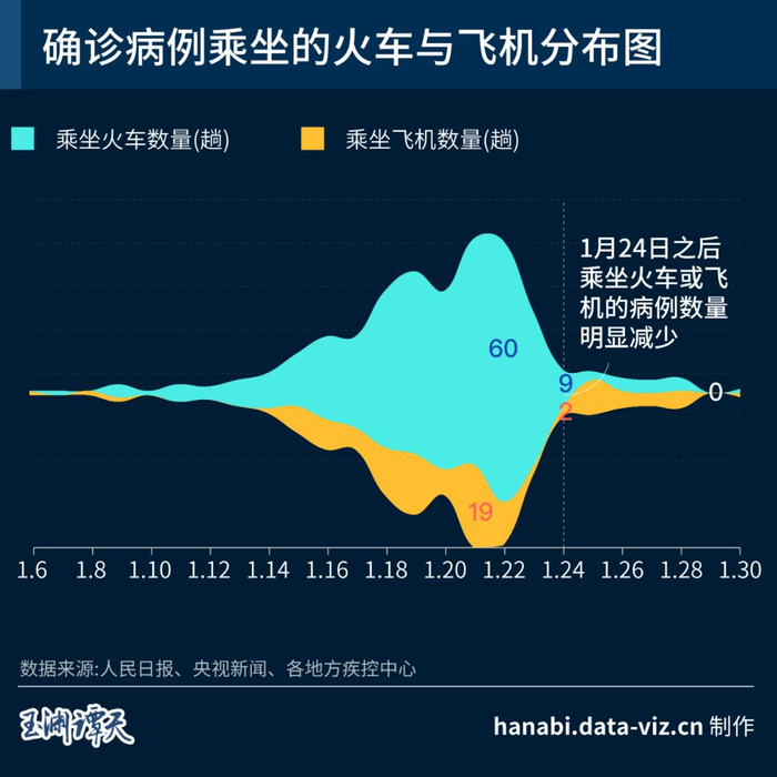 这是谭主根据1月6日以来,互联网上公布的所有新冠肺炎患者乘坐过的列车信息所梳理的时间分布情况。