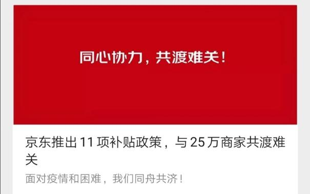 为了帮助广大商家渡过难关,京东已于2月2日面向平台25万商家推出包括费用减免、金融和物流支持、技术支持等在内的11项补贴措施,总价值达1亿元。