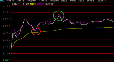 本周二(2月4日)50ETF的一段行情可以演示这种情形: