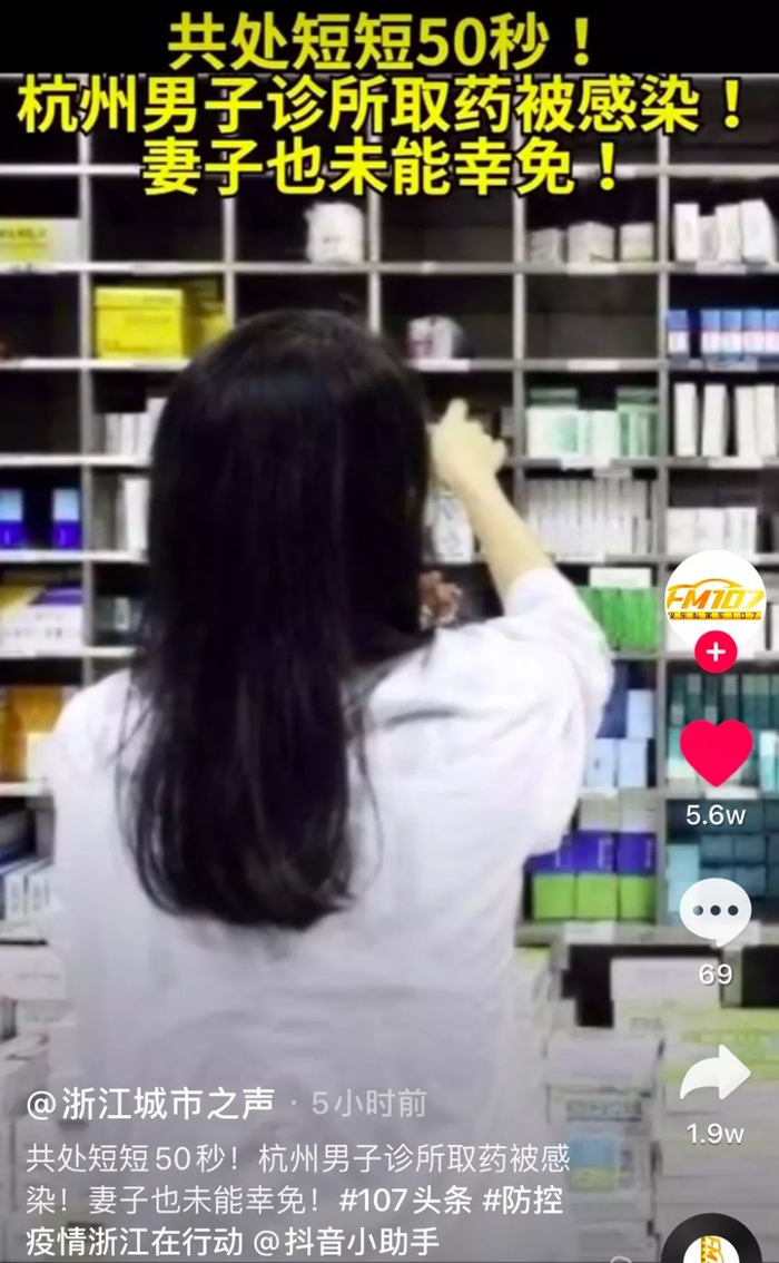 还有杭州的新闻,一男子在短短50秒的时间里,取药过程中感染病毒!