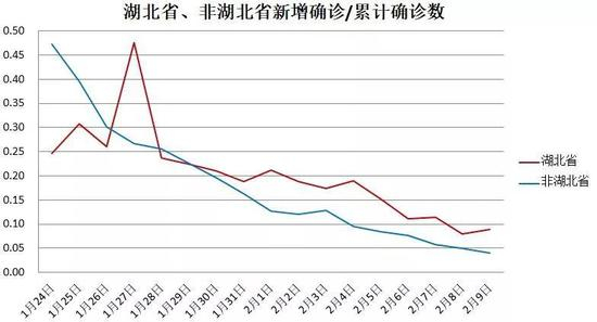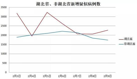 从先行指标——新增疑似来分析,也表明湖北省和湖北省外地区出现分化走势。