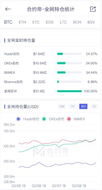 杜万认为,2020年第一季度将是BTC一个很好的上涨周期。当前短线盘面,10000附近是一个重要的筹码的成交区,BTC也达到了周线上轨。据合约帝大数据显示,4大期货交易所持仓超过30亿基金。其中BitMEX持仓超过了10亿美金。
