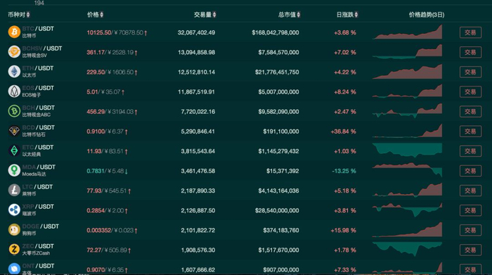BCH、ETC、EOS、RXP等主流币均已翻红,BNB、HT等平台币也集体大涨。甚至很多沉寂已久的山寨币也仿佛“起死回生”,有些甚至拉出了10%以上的涨幅,券商中国记者粗略统计,在GATE.IO平台USDT交易区,有10个币种涨幅超过20%,涨幅最高的山寨币SMT上涨66%。