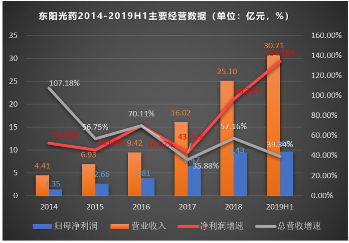 首先,我们来看下东阳光药自2014年以来的业绩情况。