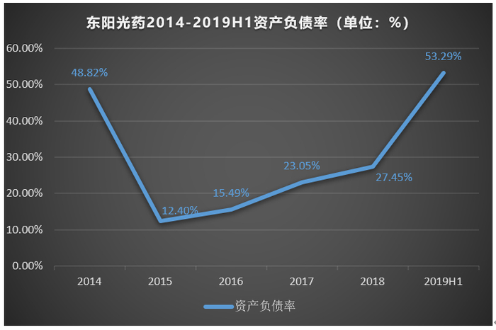 但与此同时,为了投入巨额的研发资金和进行外延式扩张,东阳光药也背负着不少的债务压力。