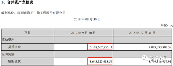 另外值得注意的是资产负债表显示,海王生物短期借贷高达86.43亿,远远超出其流动资产货币资金的51.99亿,有近35亿的资金缺口。