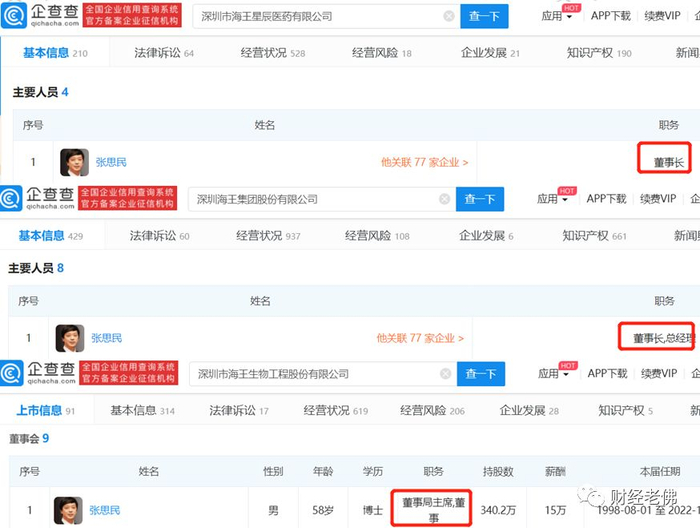企查查显示,海王星辰隶属于深圳市海王星辰医药有限公司,旗下拥有近40家遍布各地的健康药房分公司。2016年8月海王星辰进行了私有化,投资方包含中国海王生物药店控股有限责任公司及全资子公司海王银河医药投资有限公司。
