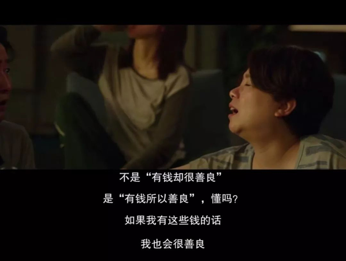 虽然这个短语没有直接出现在台词里,但当基泽在给社长开车时听到他说的“臭味”,当女主人下意识地掩了掩鼻子阻挡味道,基泽一家从这时开始有了自尊的体现,开始暗暗滋长愤怒和仇恨。