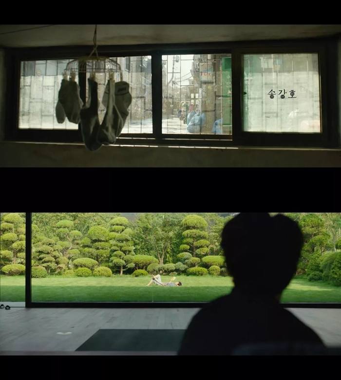 的确,在他的拿手技下,纵使抛开奥斯卡光环,虽然没有李沧东《燃烧》那种虚无而朦胧的诗意,却也建立起了一种更加具有整体性的二元世界观。