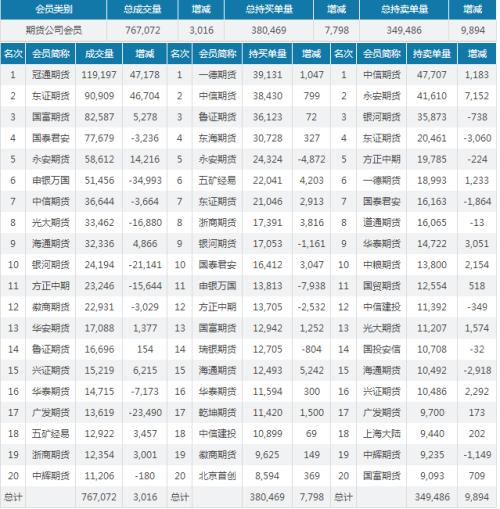 螺纹持仓报告显示:多头华泰减多1.1万,名次由四下至九;空头榜单没有大的操作。