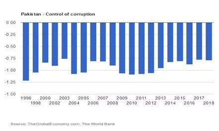 3、腐败严重:根据世界银行发布的腐败控制指数,2018年巴基斯坦得分为-0.79,全球排名第149位。腐败不仅伤害社会公平,还会导致社会治理水平下降。