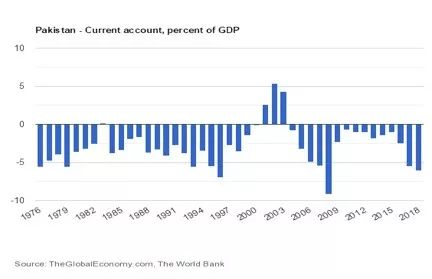 2017年标普调整脆弱国家名单,巴基斯坦赫然在列。标普认为巴基斯坦拥有着庞大的经常项目赤字,非常容易受到外资撤离的不利影响。经常项目下,巴基斯坦是长期赤字国,而且赤字比例对GDP的占比很高,2018年高达6.1%。雪上加霜的是,巴基斯坦卢比对美元在2018年贬值20.4%之后,在2019年进一步贬值10.7%,以致于巴基斯坦官方宣布停止用美元结算国际贸易。但这实际上近乎不可能,因为美元是世界货币之锚。即便采用人民币结算,汇率结算的计价基础还是美元。