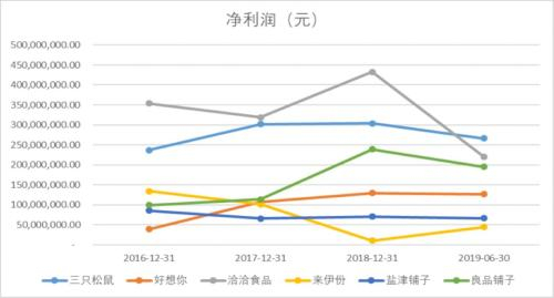 如果从归母净利润方面来看,2018年盈利前三名的是恰恰食品、三只松鼠和良品铺子,其净利润分别为4.33亿元、3.04亿元以及2.39亿元,2019年净利润分别是2.2亿元、2.66亿元、1.95亿元。