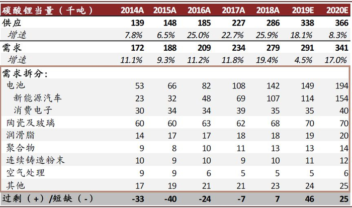 图表: 全球锂供需平衡表
