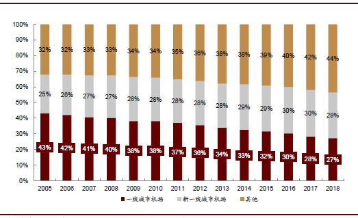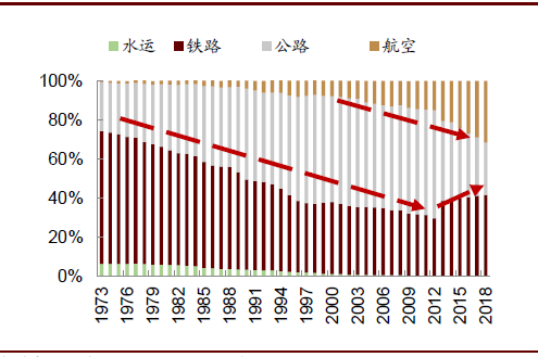 图表: 美国航空客运占比逐步提升(旅客周转量口径)