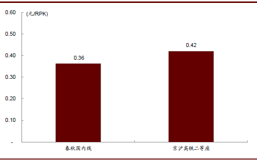 图表: 春秋VS.中国三大航国内单位收入(客运收入/RPK)对比