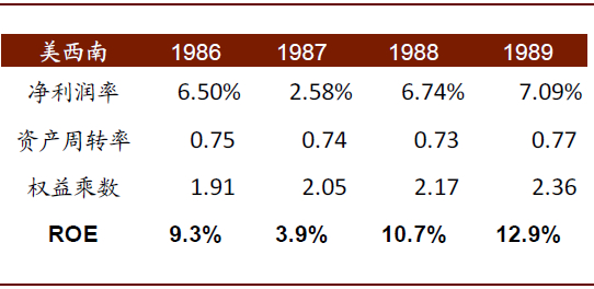 ___我们认为美西南最核心的竞争力在于其高效率、低成本的运行。公司从成立至今均维持了行业领先的ROE水平,在行业遭受重创的时候依旧坚挺。