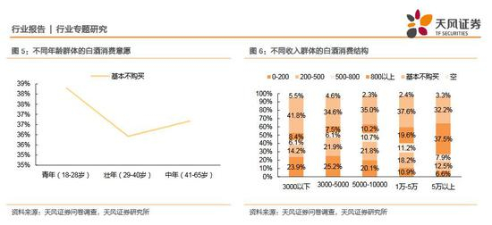 春节期间,购买高端白酒的用途主要以送礼为主辅以少量的家庭宴席消费,因此随着年龄及收入的增长,过年期间送礼走动的需求随之增多,高端白酒占比也随之提升。高端白酒在高收入群体中拥有一部分的刚性需求,未来消费升级趋势下,高收入人群提升带来高端白酒需求增长。