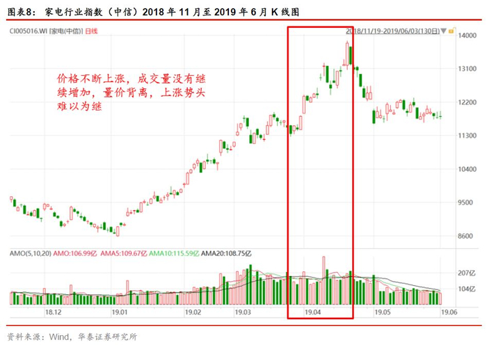 通常情况下,股票的流动性和价格走势呈相同的变化趋势,一旦出现量价走势背离的情况,可能意味着价格走势将发生转变。比如在价格上涨的过程中,如果成交量出现萎缩,股价的上涨缺乏量的推动,后续价格走势将难以为继;如果市场成交量增加,但是股票价格难以继续上涨,说明此时多空分歧逐渐增大,风险逐渐累积。