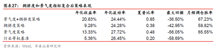 拥挤度指标可以与景气度策略复合,构建表现更好的复合策略