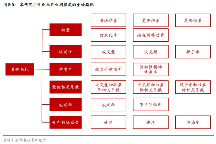 1. 从动量指标、流动性指标、波动率指标和量价相关性指标等多个角度进行行业拥挤度指标的构建。