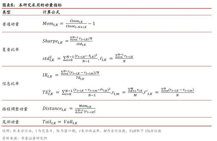 1. 普通动量:即过去一段时间内行业指数的涨跌幅,涨跌幅绝对值越大意味着行业动量越强。