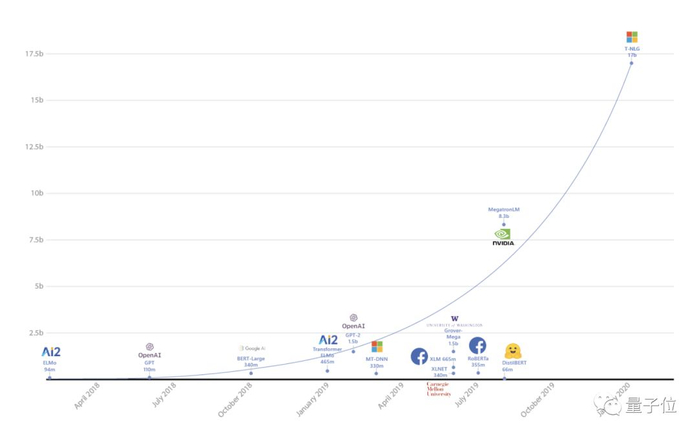 170亿参数量,是此前最大的语言模型英伟达“威震天”(Megatron)的两倍,是OpenAI模型GPT-2的10多倍。