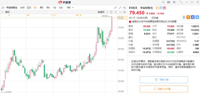 无独有偶,另外一只中国互联网医疗的先行者平安好医生,也在2月10日股价表现强势,全天大涨8.1%,走出股价五连阳。如果按照2020年初至今涨幅来计算,平安好医生在一个多月的时间已涨了39.84%!