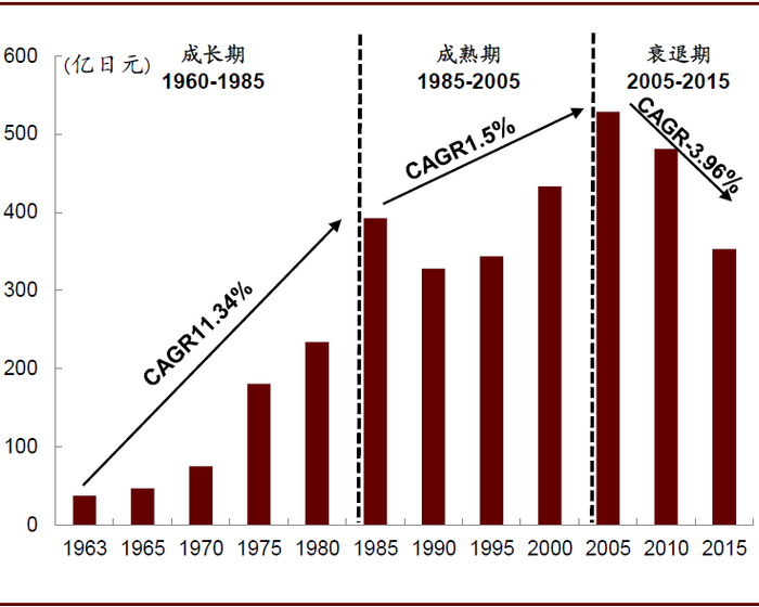 ►规律一:行业收入会经历3~4次增速换挡。日本的食醋业发展较早,至今已经历了较完整的周期。