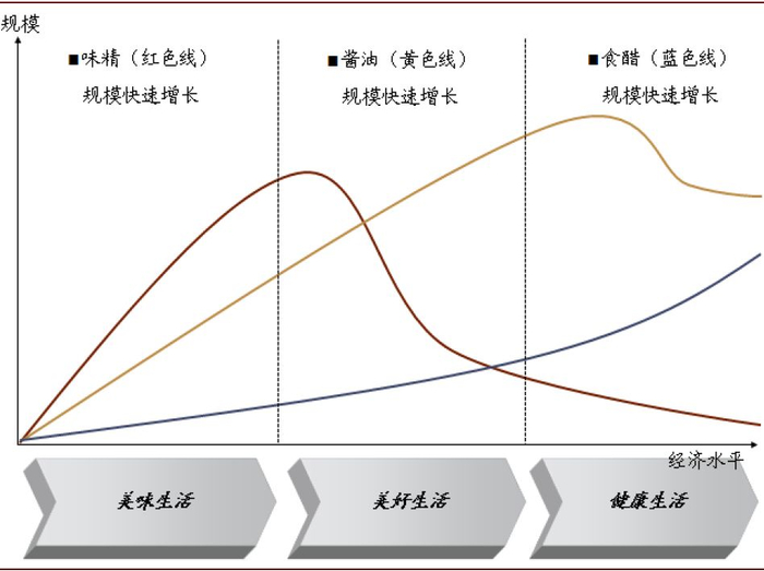 ►二是满足美好生活。随着中产阶级人群的扩大,美味生活让步于美好生活,好味道、优品质、多功能的调味品需求量较快增加,例如酱油、复合调味品、风味调味品等,这一时期的食醋价值在饮食市场得到更多的认可。