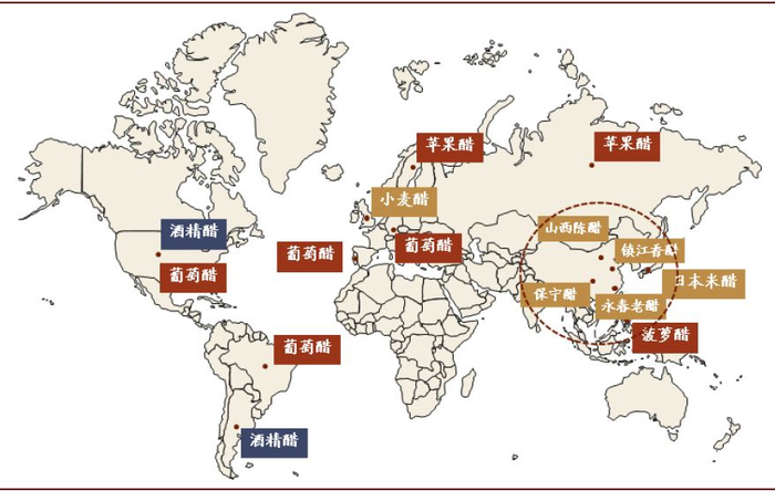 食醋是世界上非常古老的调味品,也是十分稀少的酸味调味剂,消费市场主要分布在东亚、欧洲、美洲。食醋虽然与酱油、盐等同为调味品,但却有两大独特之处:(1)消费的地域差异性更加明显;(2)不仅具有调味功能,更是有保健的功效。