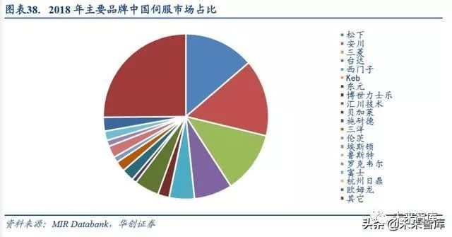 目前我国伺服电机中高端市场主要被国外企业垄断,进口产品在我国工业机器人伺服市场上占有率达 70%以上,他 们主要来自日本和欧美。其中,日系产品以超过 50%的市场份额雄踞首位,其著名品牌包括安川、松下、三菱电机、 三洋等,这些都是老牌的日本工业自动化设备生产商,技术上都很全面,其产品以良好的性能价格比和较高的可靠 性获得了稳定且持续的客户源。以西门子、施耐德、博世力士乐等为代表的欧美品牌产品过载能力高,动态响应好, 驱动器开放性强,但价格昂贵,体积重量大,在高端设备和生产线方面比较有竞争力。