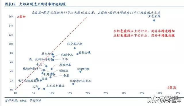 周转率:2018 年,制造业周转率增速趋缓,全年在零以上区间运行,稳中有降,周转率总体延续平稳增长态势, 接近高位。2019 年以来,制造业周转率增速经历快速下探,由正转负,周转率开始回落。截至 2019 年 11 月, 制造业周转率累计增速-1.8%,周转率连续 10 个月累计同比下滑。