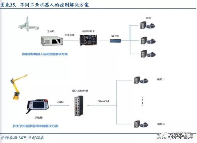 控制器硬件芯片依赖进口,软件算法差距较大。经过多年的沉淀,国内厂商的控制器硬件方案已经达到国际性水准, 但物料受到限制,底层芯片依赖进口,国内尚无研发基础。在软件上,国际工业机器人品牌起步较早,经验与数据 非常丰富,国产品牌在稳定性、响应速度、易用性等还有一些差距。