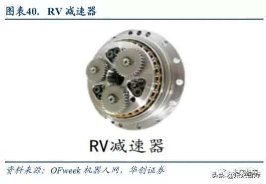 工业机器人一般使用 RV 减速器和谐波减速器,其中 RV(Rotate Vector)减速器是由一个行星齿轮减速器的前级和 一个摆线针轮减速器的后级组成。其中谐波减速器属于齿轮减速器的一种。