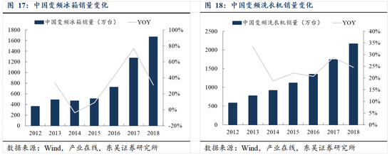 中国本土厂商在全球家电市场的优势地位逐步显现,以冰箱和洗衣机市场为例,在冰箱市场,根据欧睿国际的数据,2017 年,海尔以 17.3%的市场份额第十次位列全球第一位,美的以 3.7%的份额位居全球第五位。在洗衣机市场,根据欧睿国际的数据,2018 年,海尔位居全球洗衣机市场市占率首位,市场份额为 22.1%,美的的市场份额为 13.4%,位列全球第三位。中国本土厂商在全球家电市场占据了突出的市场份额,随着家电变频化趋势的深入,有望与本土 IGBT 厂商形成良好协同,为 IGBT 的国产替代带来重要机遇。
