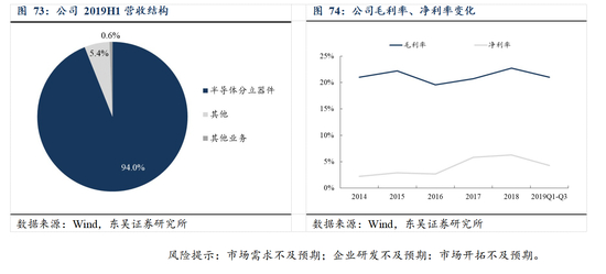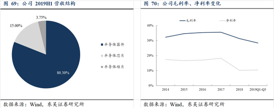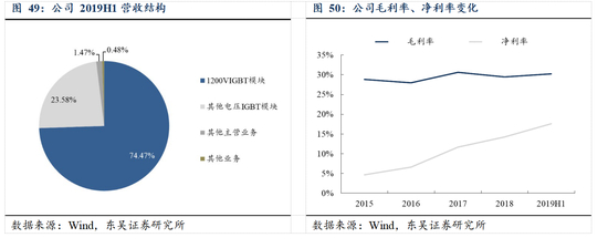立足工控 IGBT 应用,积极布局新能源汽车和变频家电等高增长细分领域,市场地位持续提升。作为国内 IGBT 市场龙头,公司一直以来紧跟国家宏观政策走向,布局具备显著发展潜力的 IGBT 细分市场,针对细分市场客户对 IGBT 模块产品性能、拓扑结构等的不同要求,公司开发了不同系列的 IGBT 模块产品,在工控、新能源汽车和变频家电等领域形成了突出的竞争优势。在工控市场,目前,公司 IGBT 模块等产品主要应用于工控市场的变频器、电焊机和电源等领域,2019H1 公司在工控及电源市场的营收占比约为 77.92%,在变频器领域,公司目前已经成为国内多家知名变频器企业的 IGBT 模块主要供应商;在逆变电焊机领域,公司是少数可以提供适合于不同种类电焊机的多系列 IGBT 模块的供应商;在新能源市场,公司产品在新能源汽车领域也有广泛应用, 公司已成功跻身于国内汽车级 IGBT 模块的主要供应商之列,市场份额不断扩大, 2019H1 公司在新能源市场的营收占比约为 18.05%。此外,在变频家电市场,2019H1 公司产品在变频白色家电及其他应用领域的营收占比为 4.03%,随着公司积极拓展产品线,未来相关 IGBT 模块产品有望在变频家电市场获得规模化应用,从而持续增厚公司业绩。