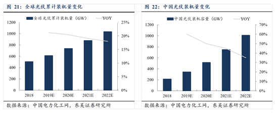 新能源发电主要以光伏发电和风力发电为主,根据中国电力化工网的数据,2020 年,全球光伏发电装机容量将达 736.62GW,同比增长 20.48%,我国光伏发电装机容量继续保持快速增长,2020 年累计装机有望达 516GW,同比增长 50%,装机容量位居世界第一。
