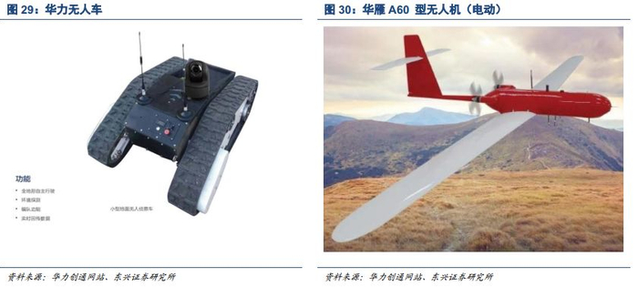 近年来,华力创通积极在无人机和无人平台方面的布局,利用在北斗导航、计算机仿真、雷达信号、卫星通讯等领先技术的基础上进行研发,产品用于军用和相关行业运用。公司积极拓展无人系统业务,以中小型无人机系统、小型侦察无人车系统、 “低慢小”目标防御系统\训练/测试无人靶机(标)等产品为发展重点,未来有望在更多的无人平台上实现布局。华力创通现已研发出一系列无人机产品,包括HWA-GSD-9,HWA-GHY-90,HWA-GHY-60,HWA-GHD-45。这些机型都是固定翼,分别有40公斤级,90公斤级,60公斤级,包括一款电动两款油动。其中HWA-GHY-90有效载重可达5-30千克。目前,公司自主研发的手抛无人机已作为靶机为部队提供训练保障,并正在加速研发可重复使用的高速光电移动靶标系统。