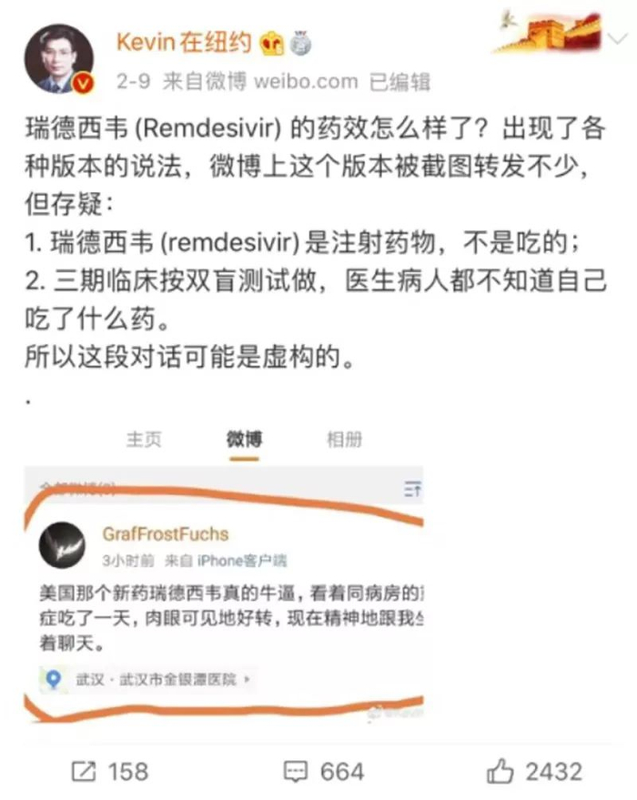 分子式一直公开可查,而非“紧急公开”;药物前身诞生于2006年,而非针对新冠肺炎的研发新药;双盲实验仍在进行,而非参与实验患者“全部显效”……瑞德西韦这些天对于“网红是非多”当是感触颇深。