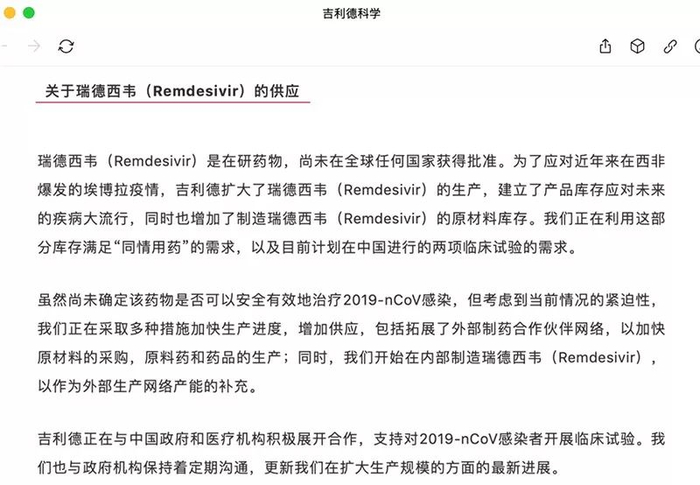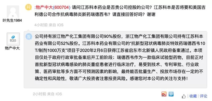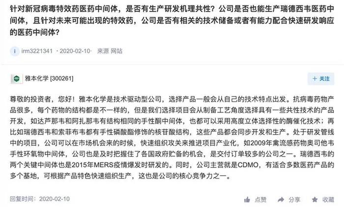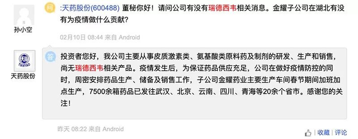 同时,瑞德西韦这两天还曾多次出现在不同公司互动平台的问答中。