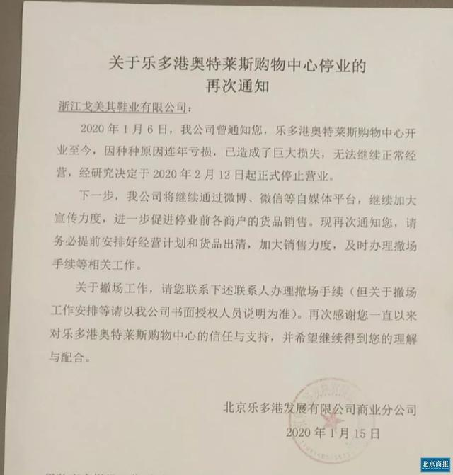 直到2月12日闭店前夕,乐多港方面仍未给予商户关于后续问题的具体回复,多数商户表示不会离开乐多港。在闭店当天,北京商报记者向多家商户了解,历经一个月的协商,目前乐多港奥莱并没有给商户明确的撤场安排和后续如何经营的回复。