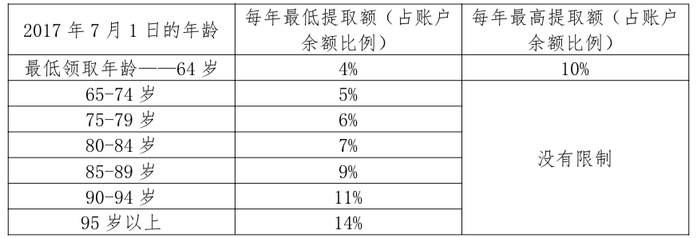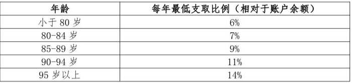 (3)每年收到账户余额的6%,80岁以后支取额度会提高,TTR和CI账户的具体的最低支取比例规定一致(表3)。