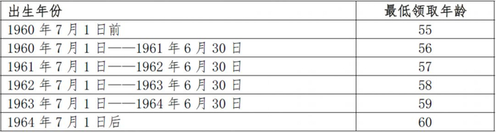 表1 不同出生年份所对应的最低领取年龄(Preservation Age)