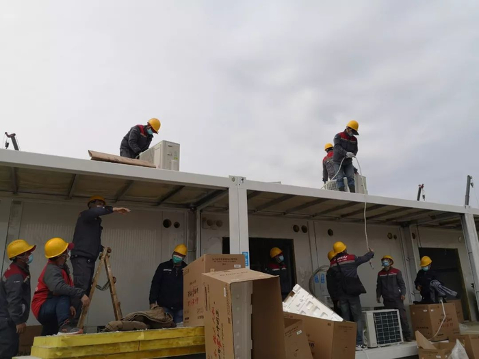 但由于工期紧、现场情况复杂,安装师傅们遇到的难题要比平时多得多。“(现场)不光是我们在干,水电、管道都在赶建。”张林称,一般情况下,应该是医院建好之后再装空调,但雷神山医院是边建边安,各道工序同时施工下难免有突发情况,例如“有时候想装(空调),但电没送上来,有时候装好了,别的地方又碍事了。”不过,好在师傅们都是以工程为主,将尽快交付放在第一位,相互之间并没有发生矛盾。