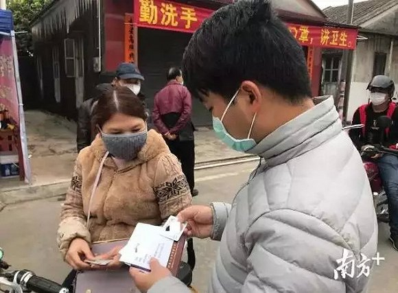 根据江门市在2月3日发布的《网格化疫情防控操作指引》,进入村、物业小区的外来人员,要详细登记个人信息,并进行体温测量。为此,桥美村将原有的8个出入口缩减到1个,所有进出村子的人员都要出示身份证件并测量体温。陈文夫妻俩今年过年没有回老家,但身份证上的外地地址却给他们带来了一些不便:出入口网格员需要反复核实外出进货的陈文是村里的住户,并且过年没有外出。