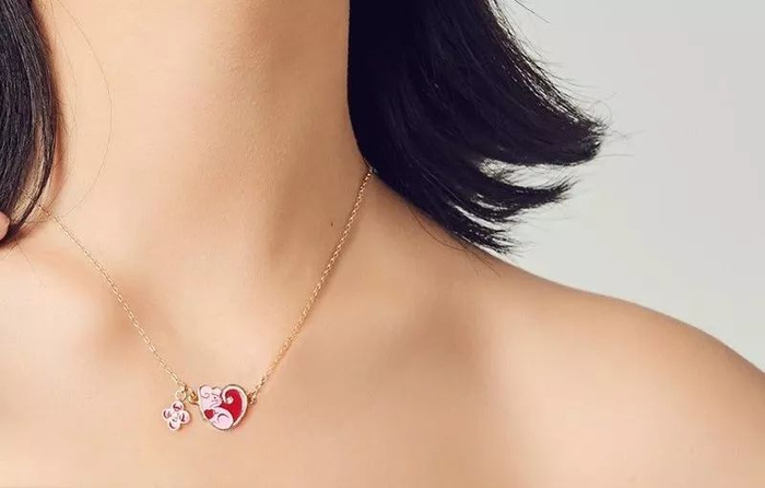 在色彩上,吊坠采用了双面双色珐琅彩,喜庆大方的中国红,温婉娴静的桃花粉,两面都可佩戴,适应多种场合与穿搭。小福鼠的尾巴、小花吊坠的中心还点缀着耀眼的锆石,精致又灵动。