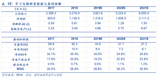 2019 年疫苗利润增速略低于预期,看好 2020 年四价流感业绩弹性。根据公司 2019 年业绩预告,疫苗公司 2019 年实现营业收入约 10.5 亿元,同比增长 31%;根据中检院数据披露,公司三价和四价流感疫苗2019 年批签发量分别为419 万和836 万人份,以平均中标价测算,营收端整体符合预期。疫苗公司 2019 年实现净利润约 3.8 亿元,同比增长 42%,略低于预期,预计主要与流脑与乙肝疫苗停止销售导致相关减值增加、疫苗业务政府补助减少有关。根据终端调研反馈,2019 年国内民众的流感疫苗接种意愿强烈,流感疫苗(尤其是四价流感疫苗)供不应求。但受 WHO 流感毒株预测偏差的影响,我国 19-20 流感季的流感疫苗脱靶,流感疫情再次引起公众关注。我们认为,在社会舆情及市场教育的持续加强下,同时叠加本次新型肺炎疫情影响,我国 2020 年流感疫苗需求有望继续保持强劲,公司四价流感疫